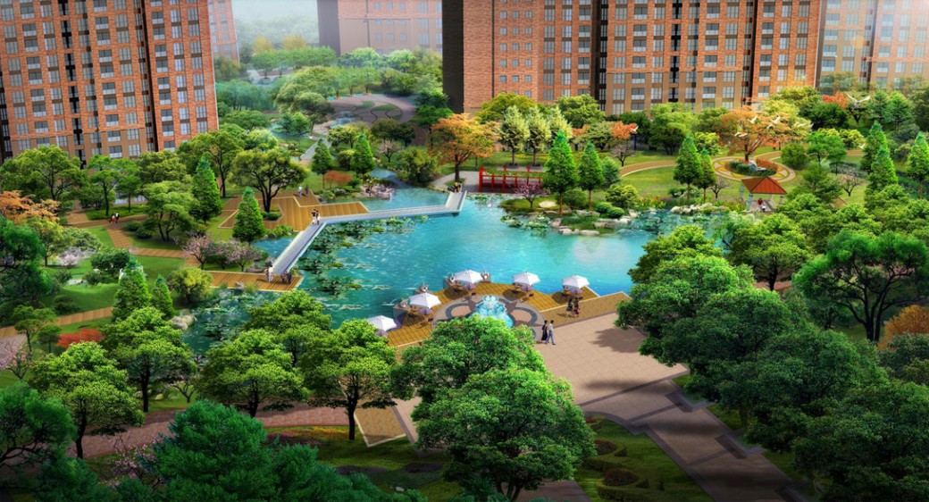 設計以“家”歸屬感和“自然”的親近性為基礎理念,一系列開敞性的,供廣大居民享用的、充滿生活氣息的景觀空間散布在小區內的各個組團內,以達到每個組團都有自己的獨特的生活特色與空間。