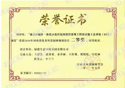 商丘市城鄉(xiāng)一體化示范區(qū)包河沿岸景觀工程EPC項(xiàng)目——2020年河南省優(yōu)秀風(fēng)景園林規(guī)劃設(shè)計(jì)二等獎(jiǎng)
