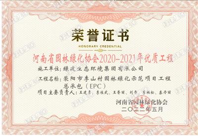 滎陽(yáng)市李山村園林綠化示范項(xiàng)目工程總承包(EPC)——河南省園林綠化協(xié)會(huì)2020-2021年優(yōu)質(zhì)工程