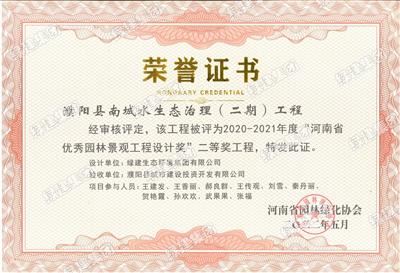 濮陽(yáng)縣南城水生態(tài)治理(二期)工程 2020-2021年度河南省優(yōu)秀園林景觀工程設(shè)計(jì)獎(jiǎng)二等獎(jiǎng)