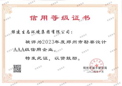 2023年度鄭州市勘察設(shè)計(jì)AAA級(jí)信用企業(yè)