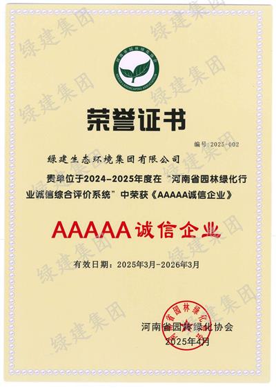 2024-2025年度河南省園林綠化協(xié)會(huì)AAAAA誠(chéng)信企業(yè)